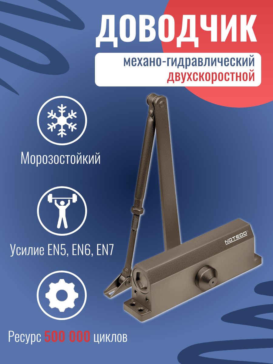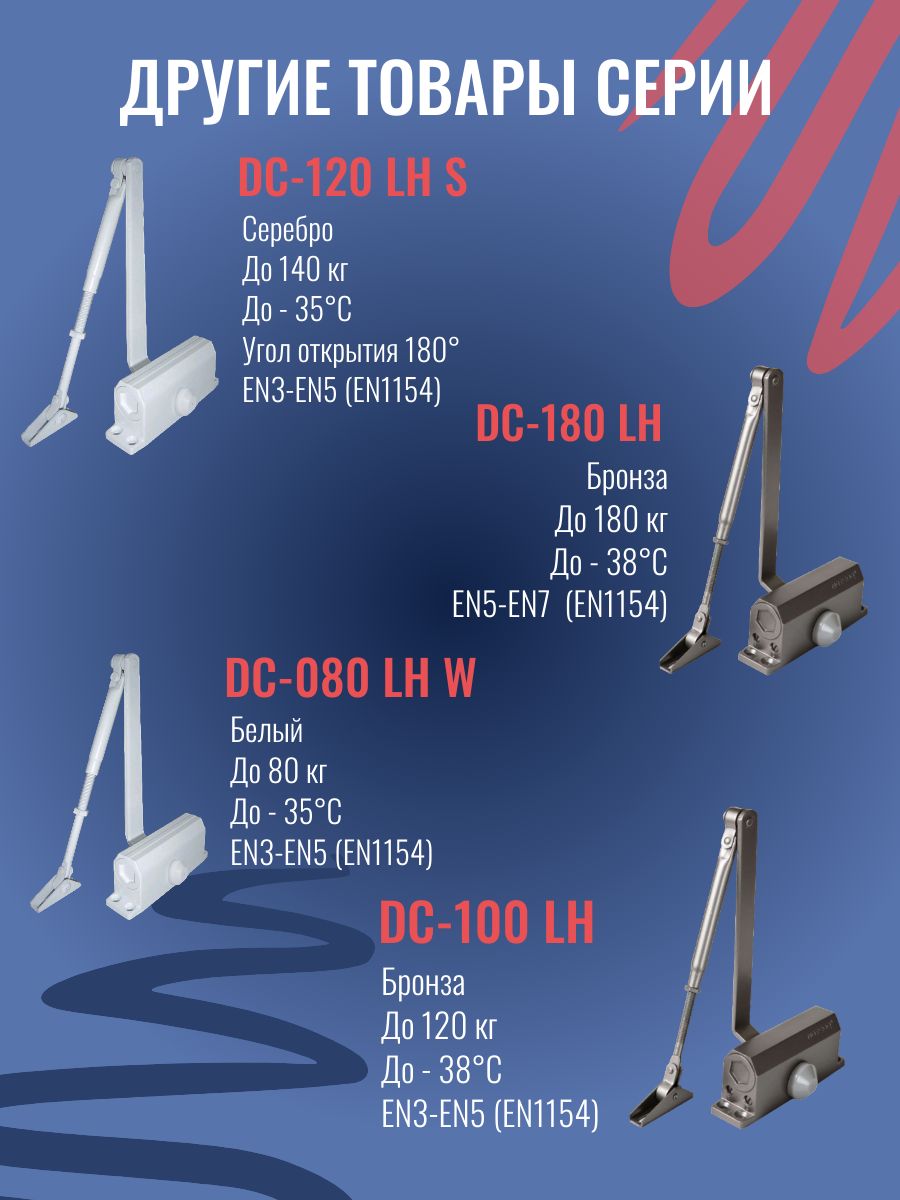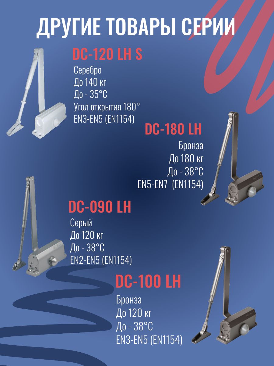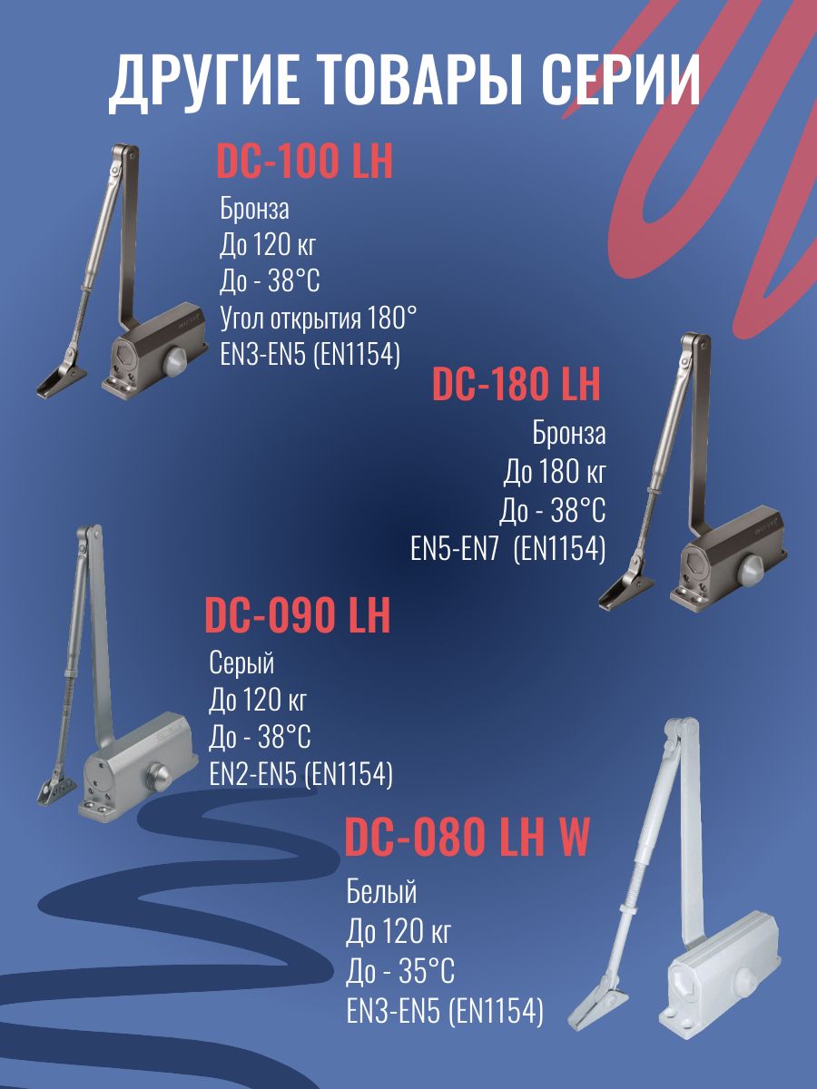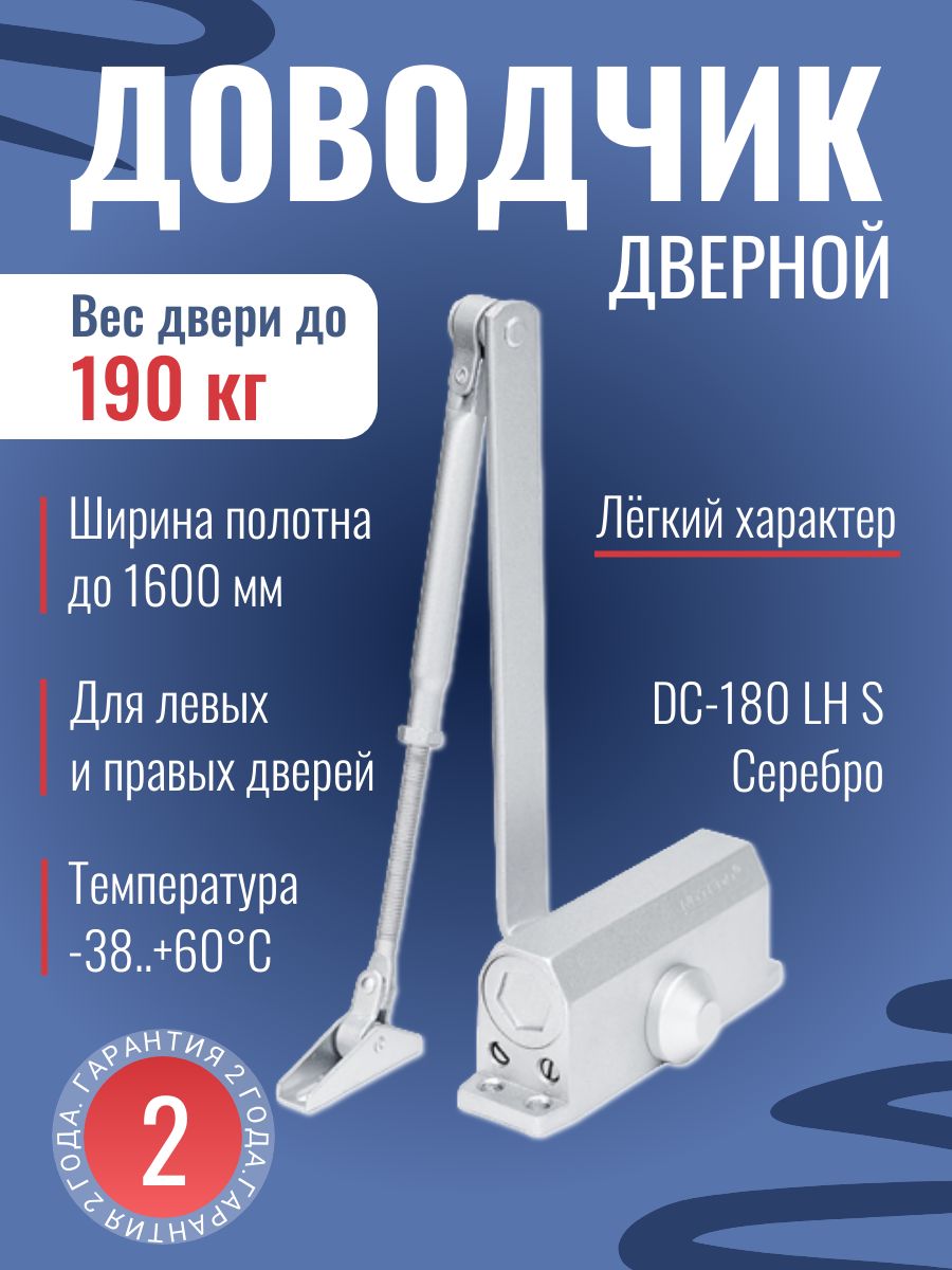 Доводчик NOTEDO DC-180 LH B предназначен для автоматической плавной регулировки закрывания тяжелых дверей массой до 190 кг, ширина дверного полотна — до 1600 мм.