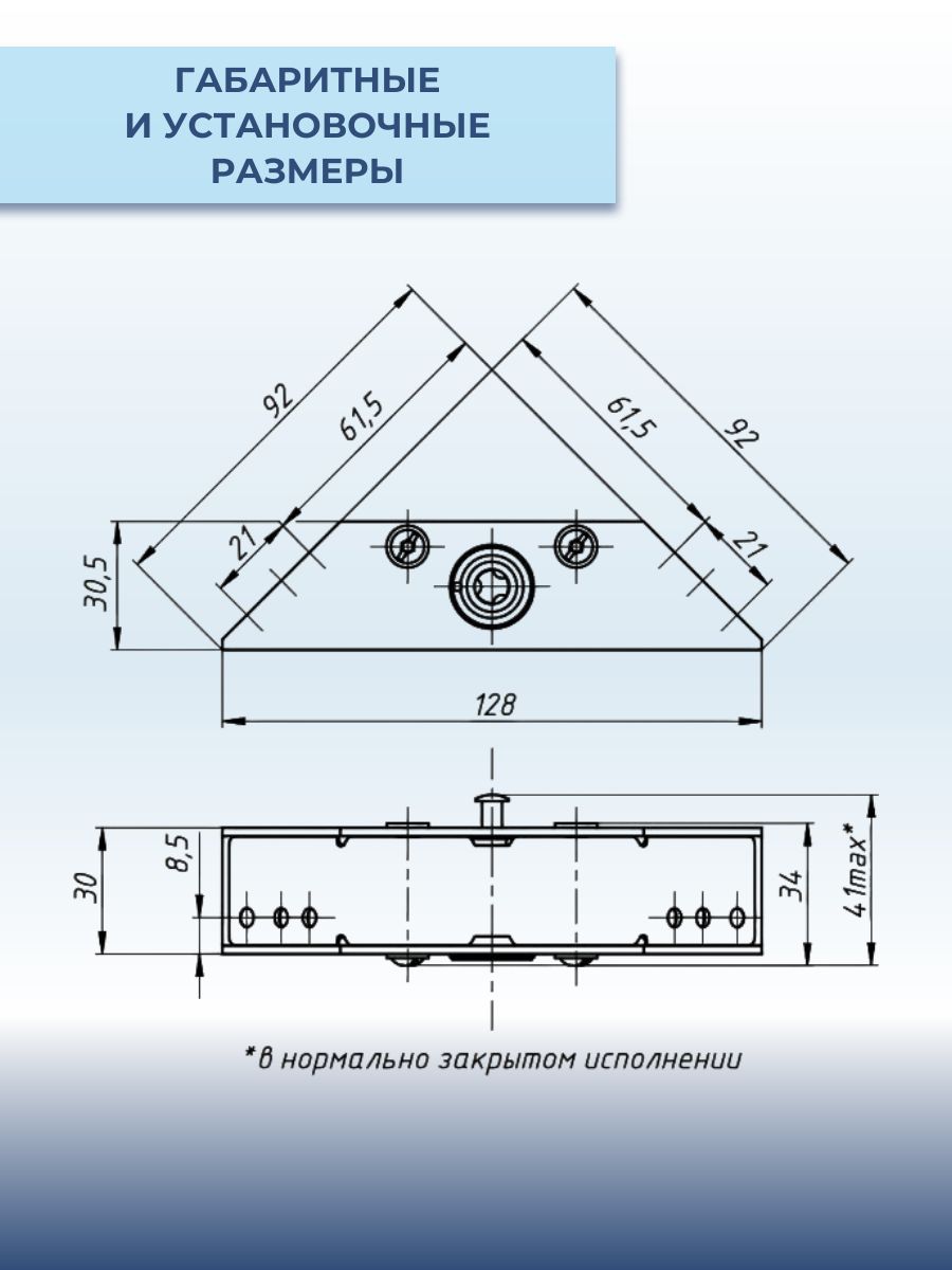 Особенность конструкции замка заключается в угловом креплении корпуса, которое повышает прочность и жёсткость дверной коробки. Ригель замка самостоятельно ориентируется в случае отклонения от идеальной позиции либо изменения геометрии полотна вследствие эксплуатационных нагрузок. Декоративная крышка корпуса скрывает места крепления и регулировочные механизмы, сохраняя эстетичный внешний вид двери.